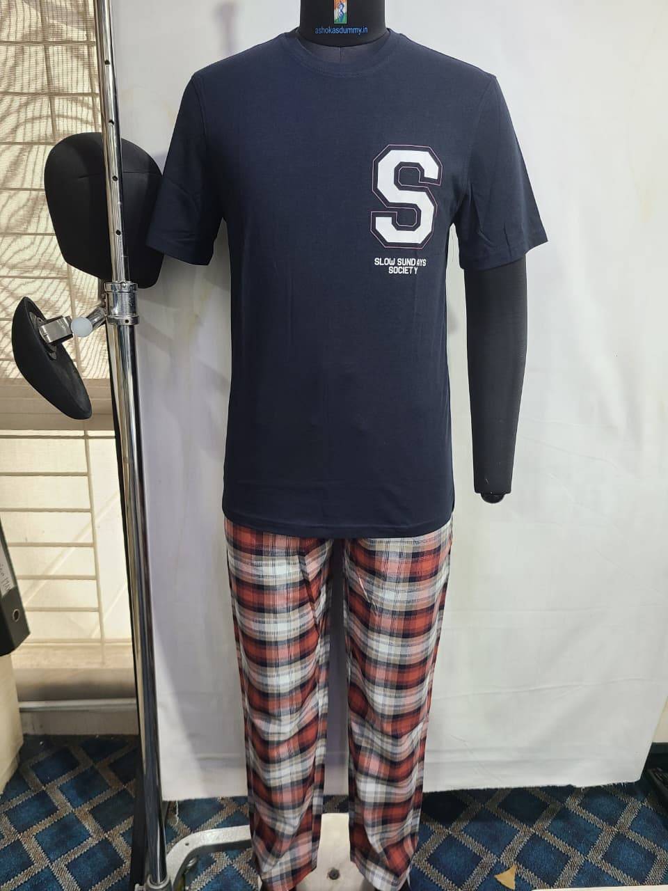 KNITTED TEE WOVEN PAJAMA SET SLOW SUNDAYS SOCIETY/NAVY / RED CHECKS