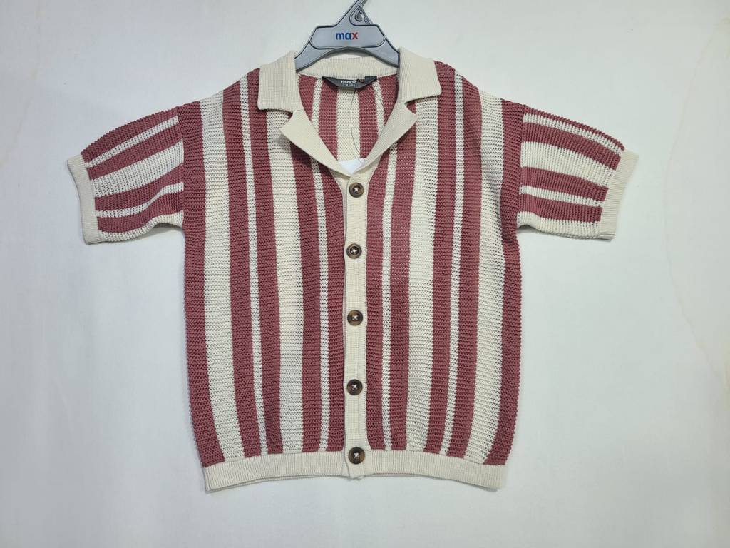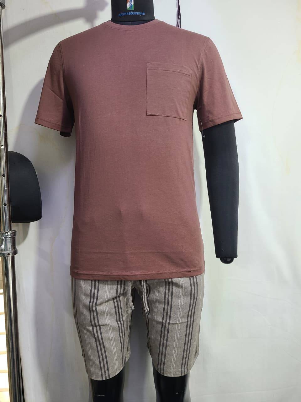 KNITTED TEE WOVEN SHORTS SET POCKET TEE/RUST AS SWATCH/ BEIGE STRIPES