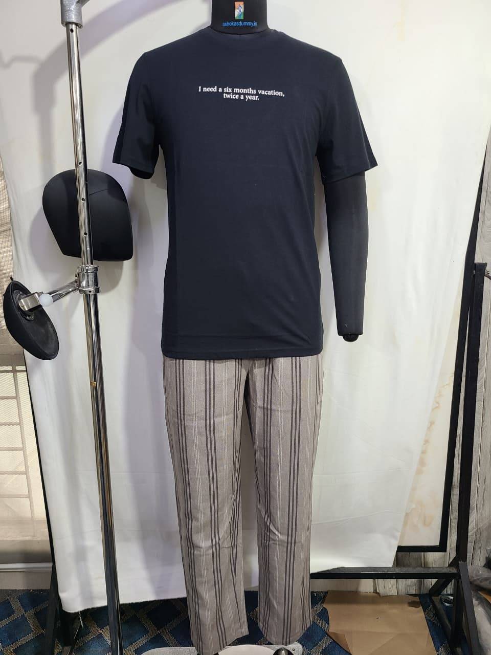 KNITTED TEE WOVEN PAJAMA SET I NEED A VACATION/BLACK / BROWN BLACK STRIPES