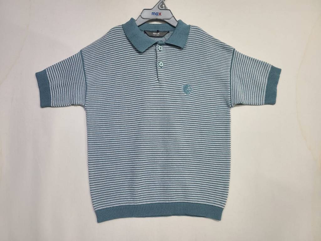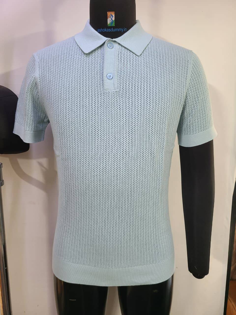 VERTICAL TEXTURE FLAT KNIT POLO/BLUE AS SWATCH