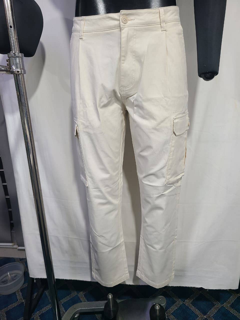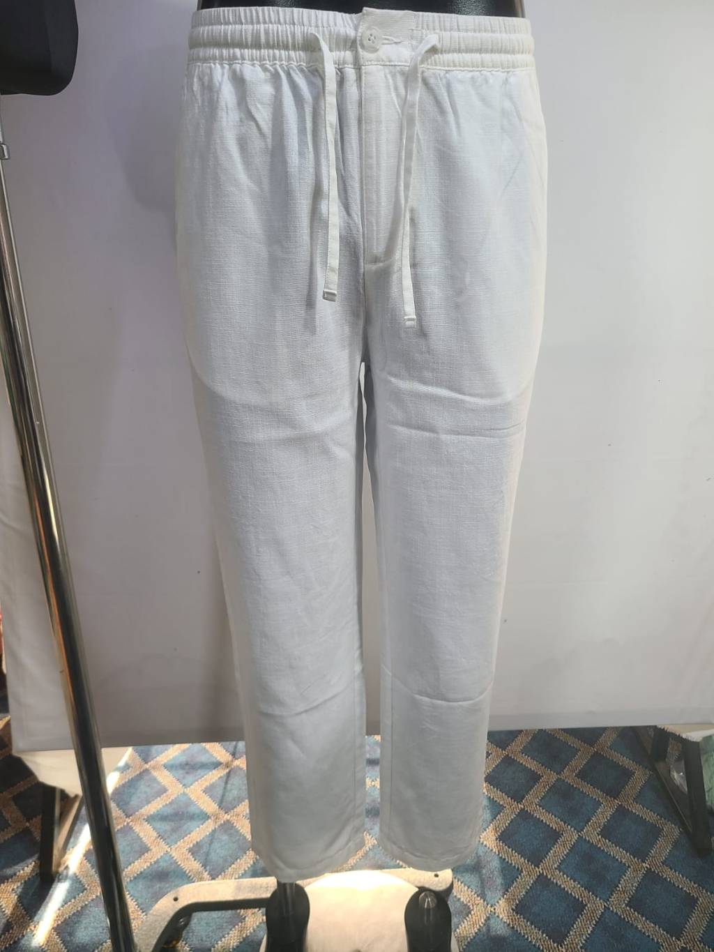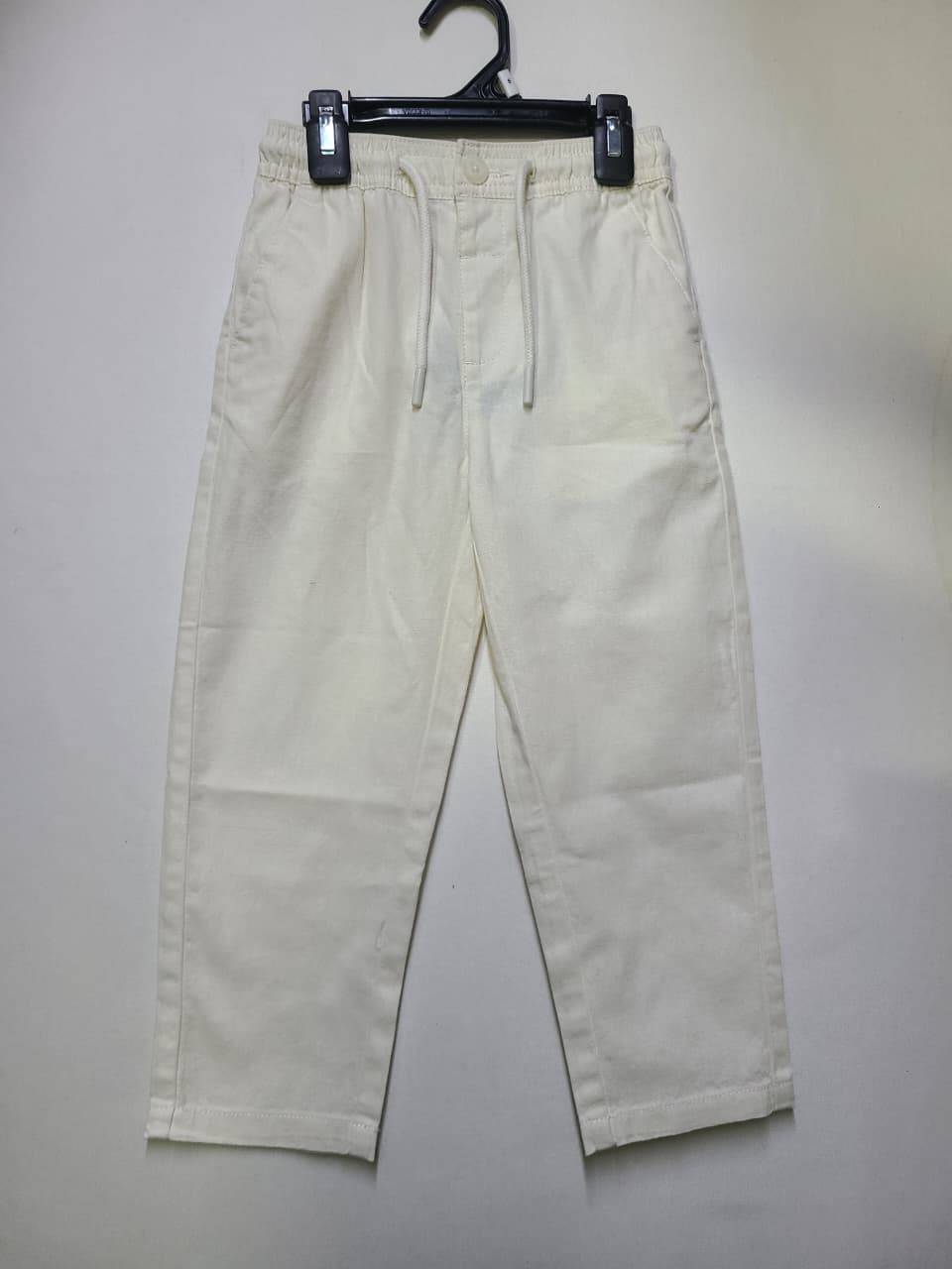 TWILL LINEN BLEND OVER DYED PULL ON BOTTOM/IVORY