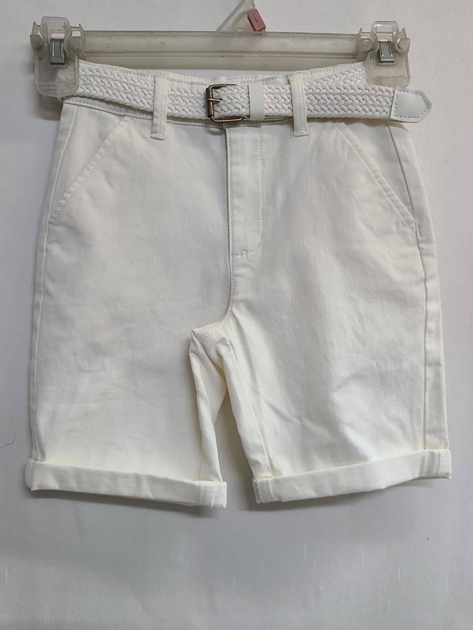 BELTED WOVEN SHORTS STRETCH TWILL/PANTONE SNOW WHITE TCX