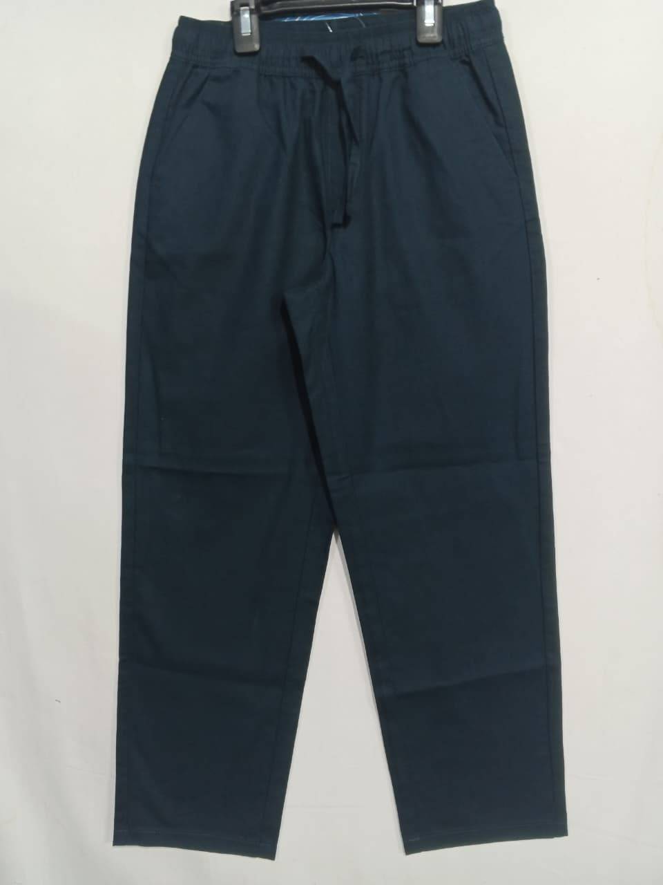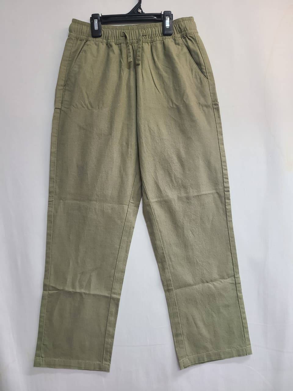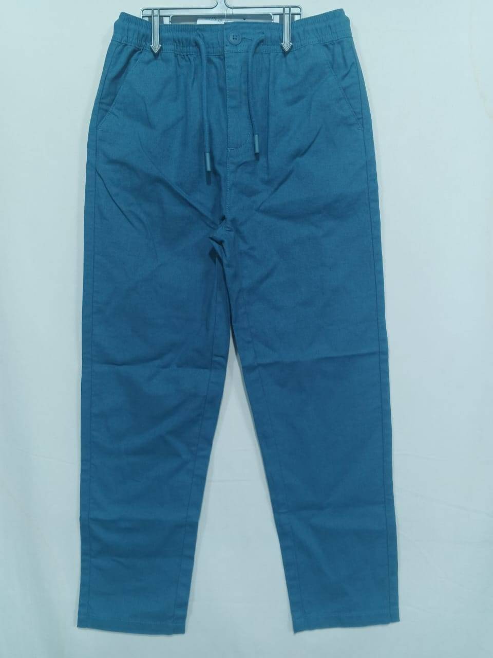 TWILL LINEN BLEND OVER DYED PULL ON BOTTOM/GREEN AS SAMPLE