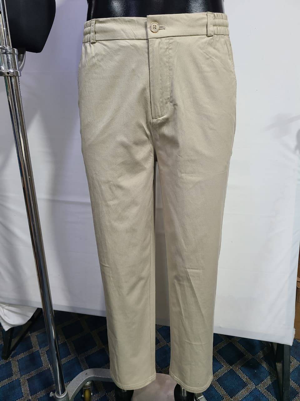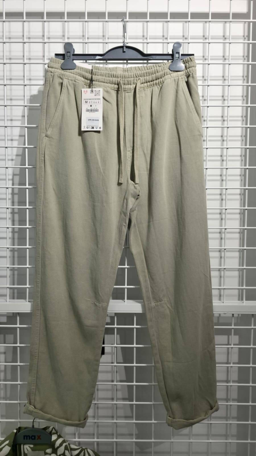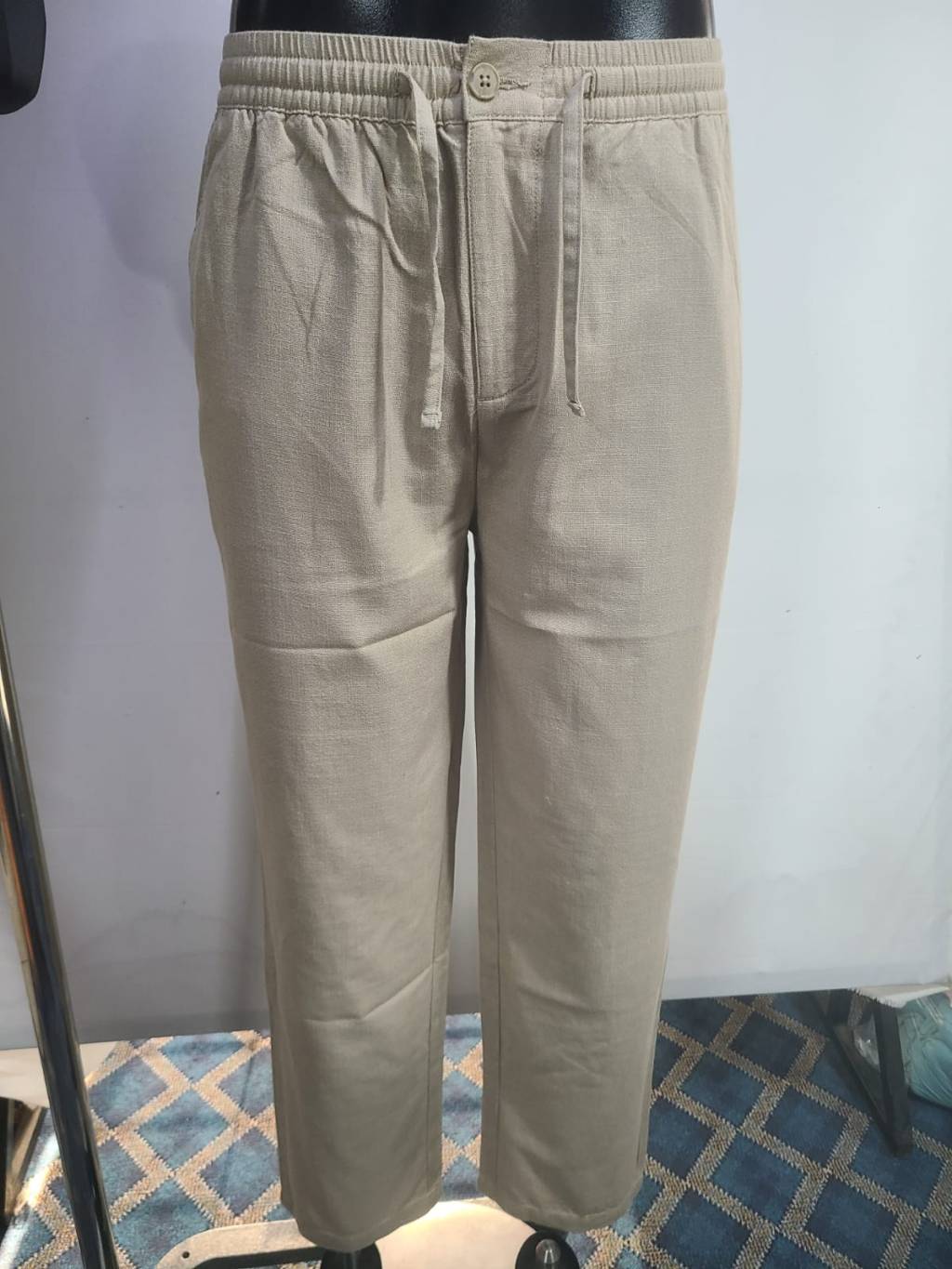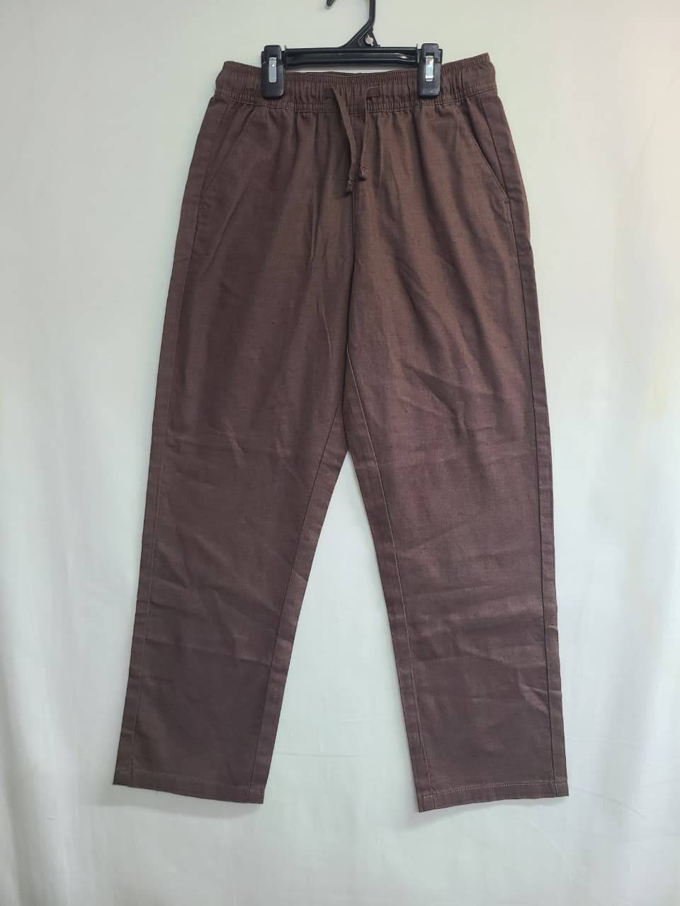 TWILL LINEN BLEND OVER DYED PULL ON BOTTOM/GREEN AS SAMPLE