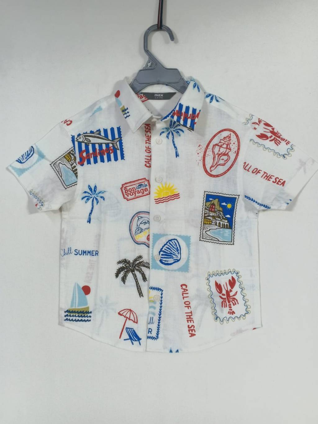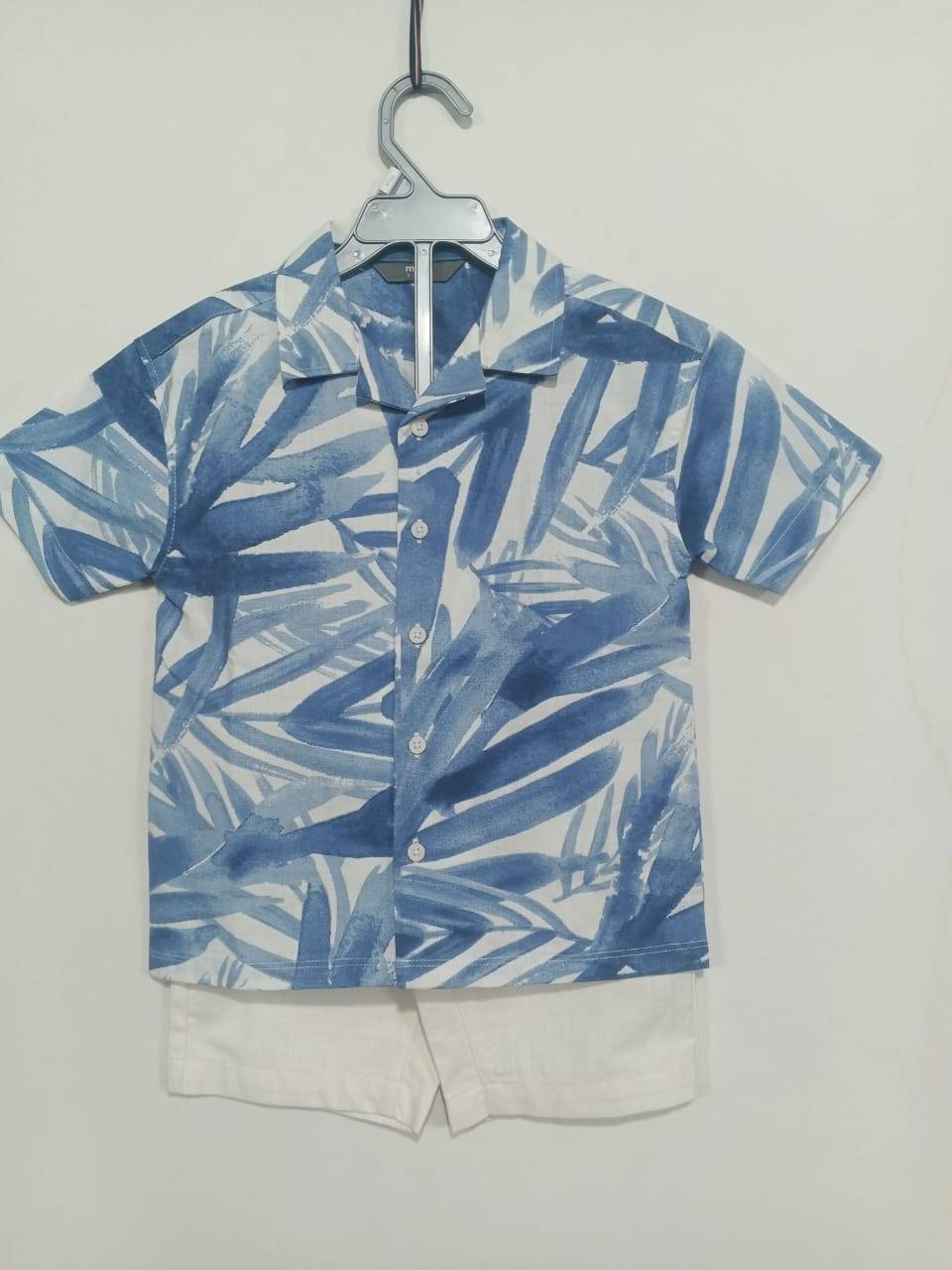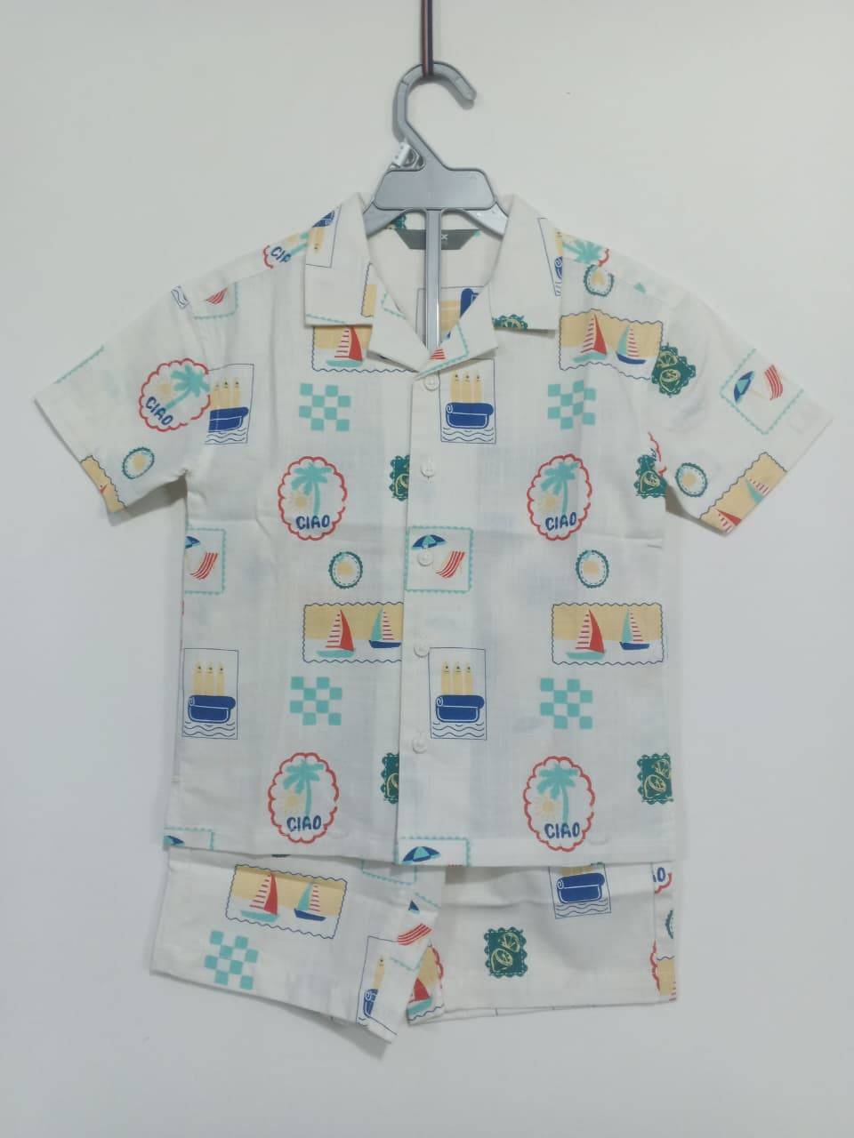 ALLOVER SEA THEME PRINTED SHIRT AND SHORT SET/PANTONE SNOW WHITE TCX