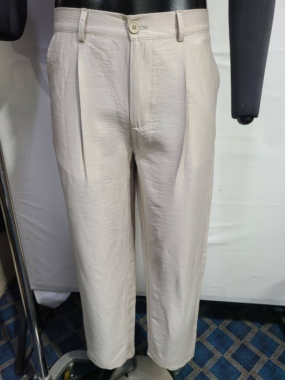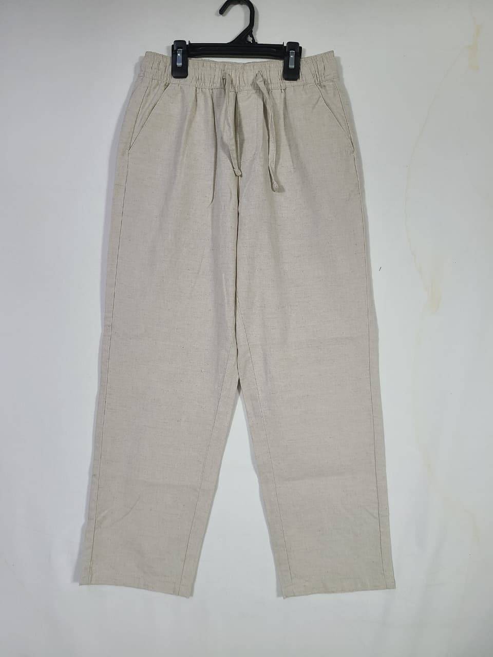 TWILL LINEN BLEND OVER DYED PULL ON BOTTOM/BEIGE