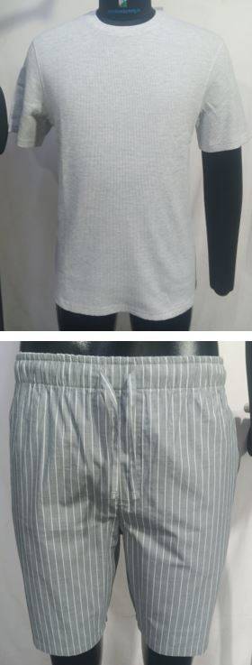 KNITTED TEE WOVEN SHORTS SET TEXTURED TEE/GREY MARL / KAMBABA WHITE STRIPE