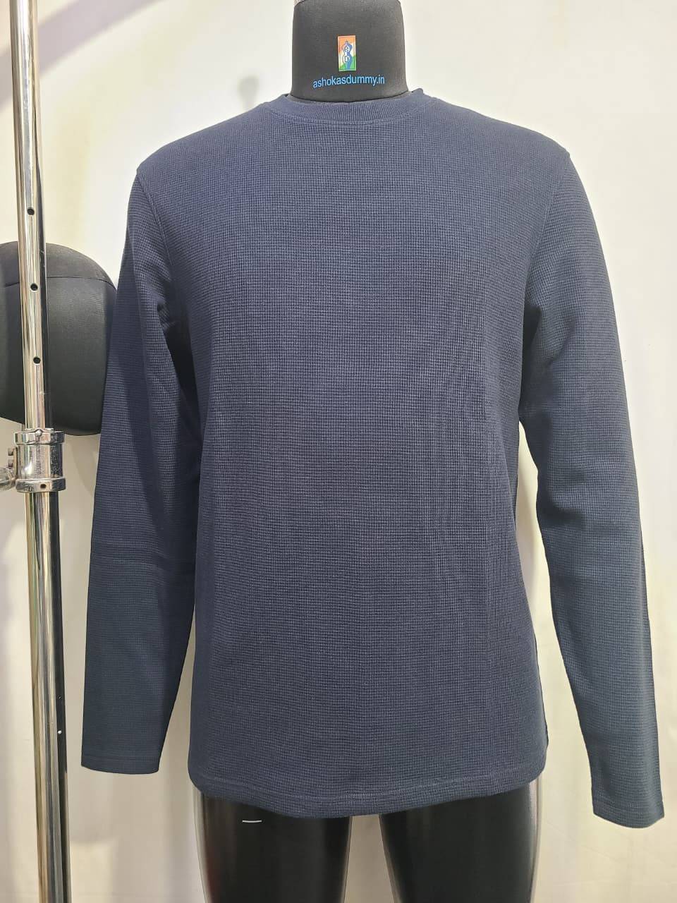 LS WAFFLE TEXTURED CREW NECK TEE/NAVY