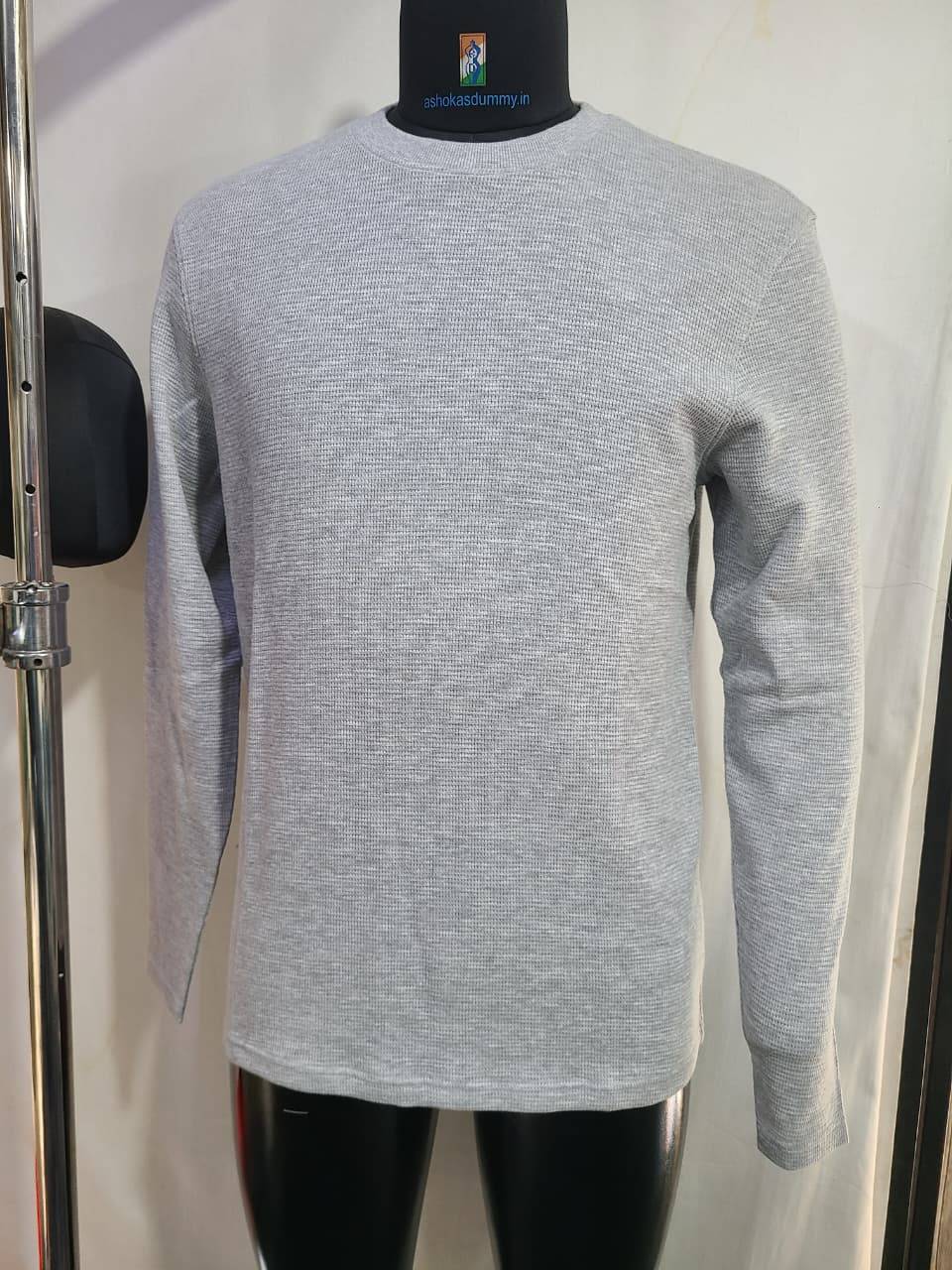 LS WAFFLE TEXTURED CREW NECK TEE/GREY MARL