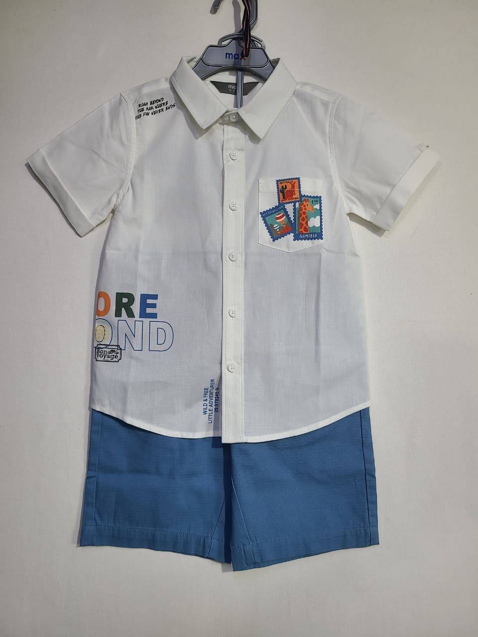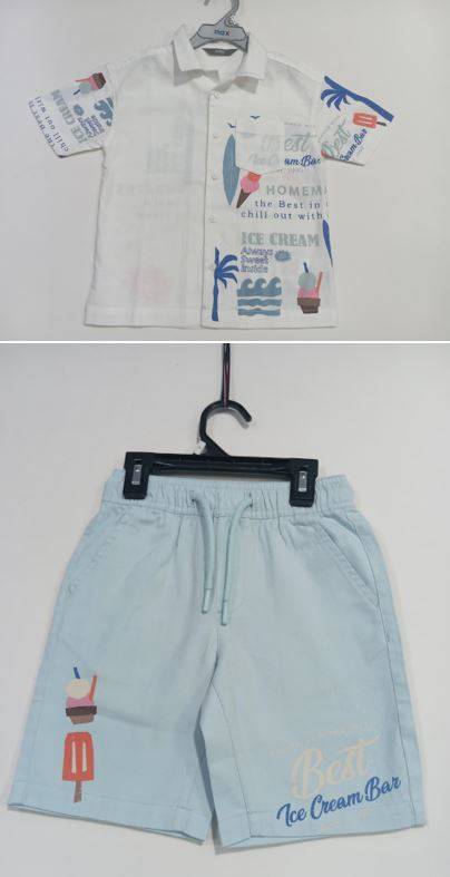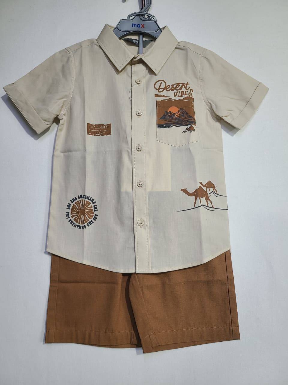 OFF KILTER FRONT AND BACK PRINTED SHIRT AND KNIT SHORTS SET/IVORY
