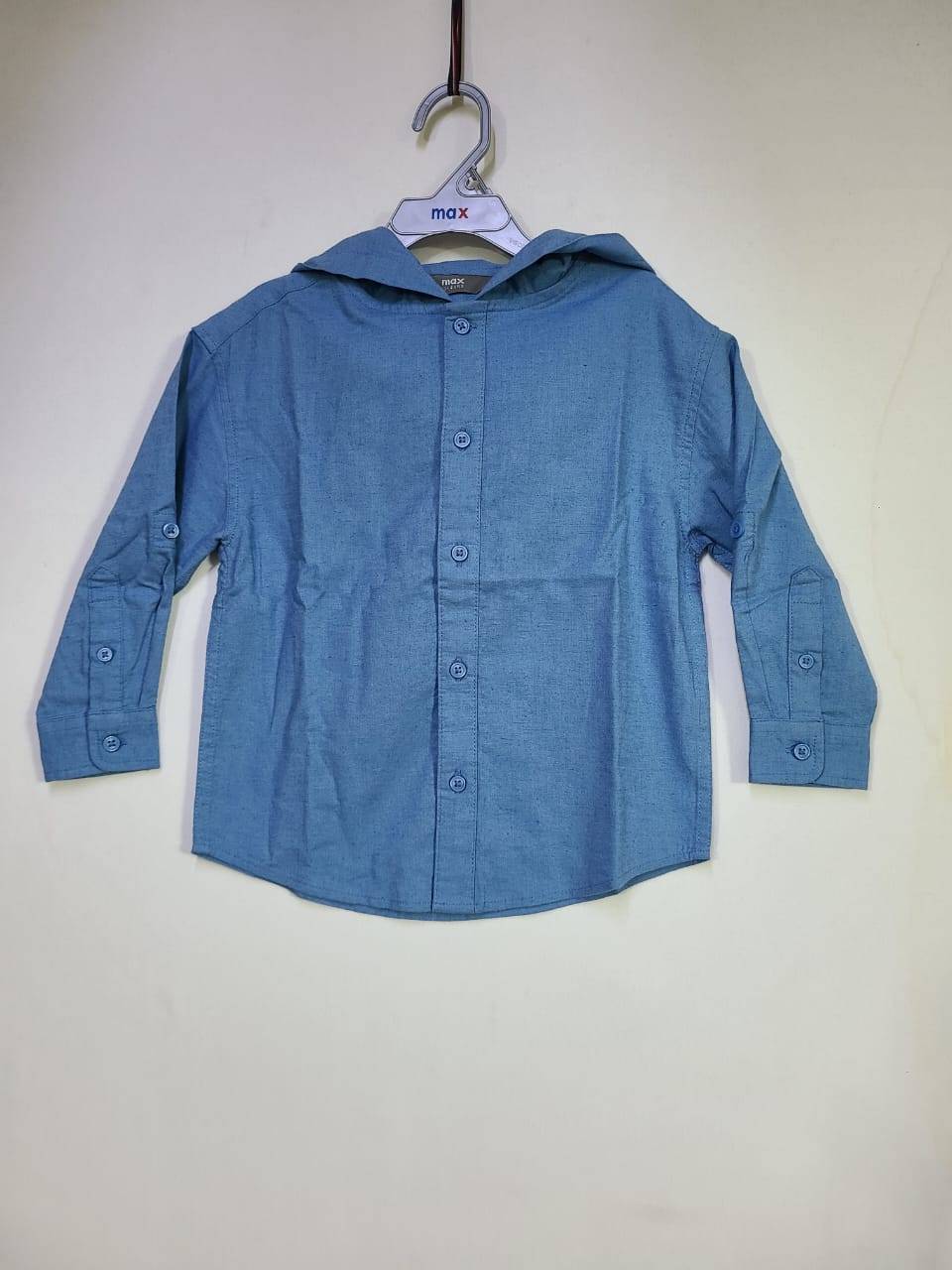 L/SLV LINEN RICH SOLID HOODED SHIRT/PANTONE COPEN BLUE TCX
