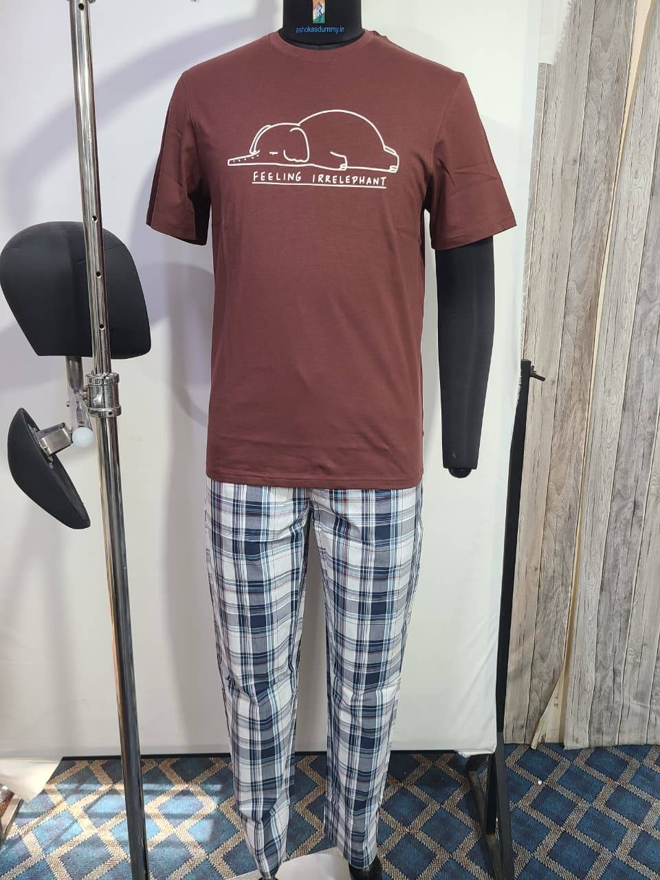 KNITTED TEE WOVEN PJ SET FEELING IRRELEPHANT/CHOCOLATE BROWN/ WHITE CHECK