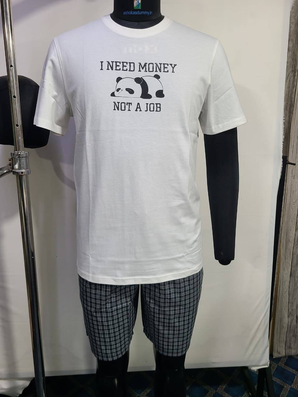 KNITTED TEE WOVEN SHORTS SET I NEED MONEY NOT A JOB/IVORY / BLACK CHECK