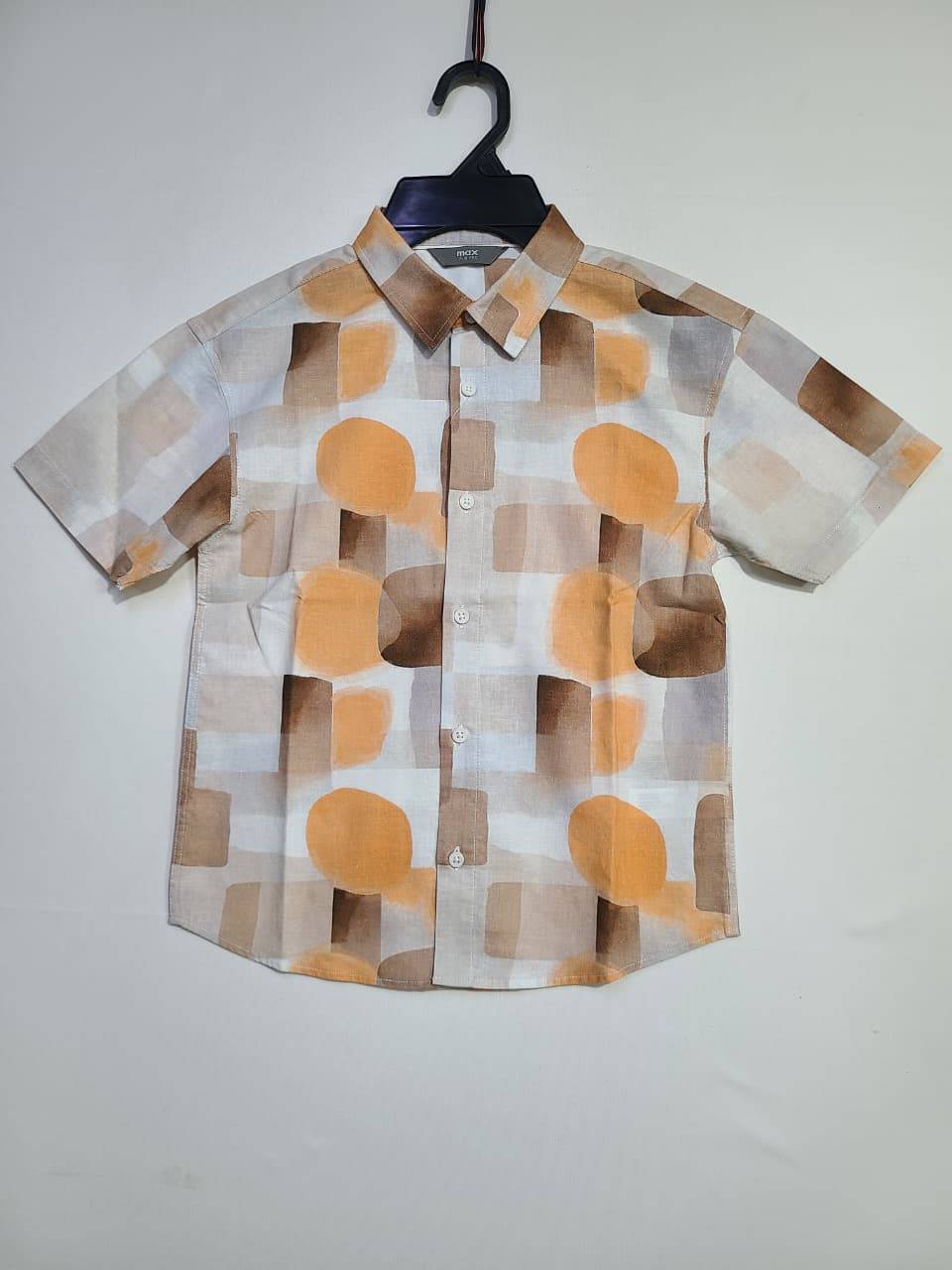 ALLOVER ABSTRACT LINEN RICH PRINTED S/SL SHIRT/PANTONE HUMUS TCX
