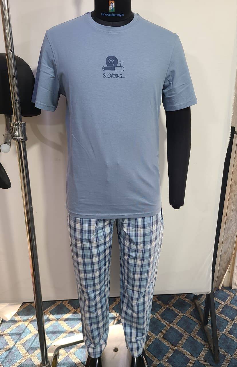 KNITTED TEE WOVEN PJ SET SLOADING/BLUE / BLUE CHECK