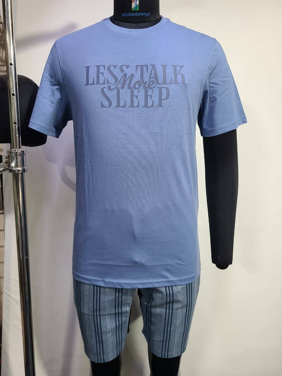 KNITTED TEE WOVEN SHORTS SET LESS TALK N SLEEP/INFINITY / NAVY STRIPES
