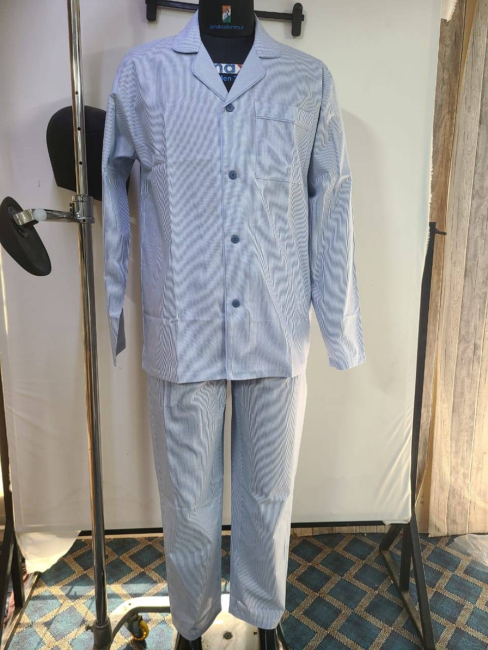 LS SHIRT & PAJAMA SET IN BLUE STRIPE/BLUE PIN STRIPE