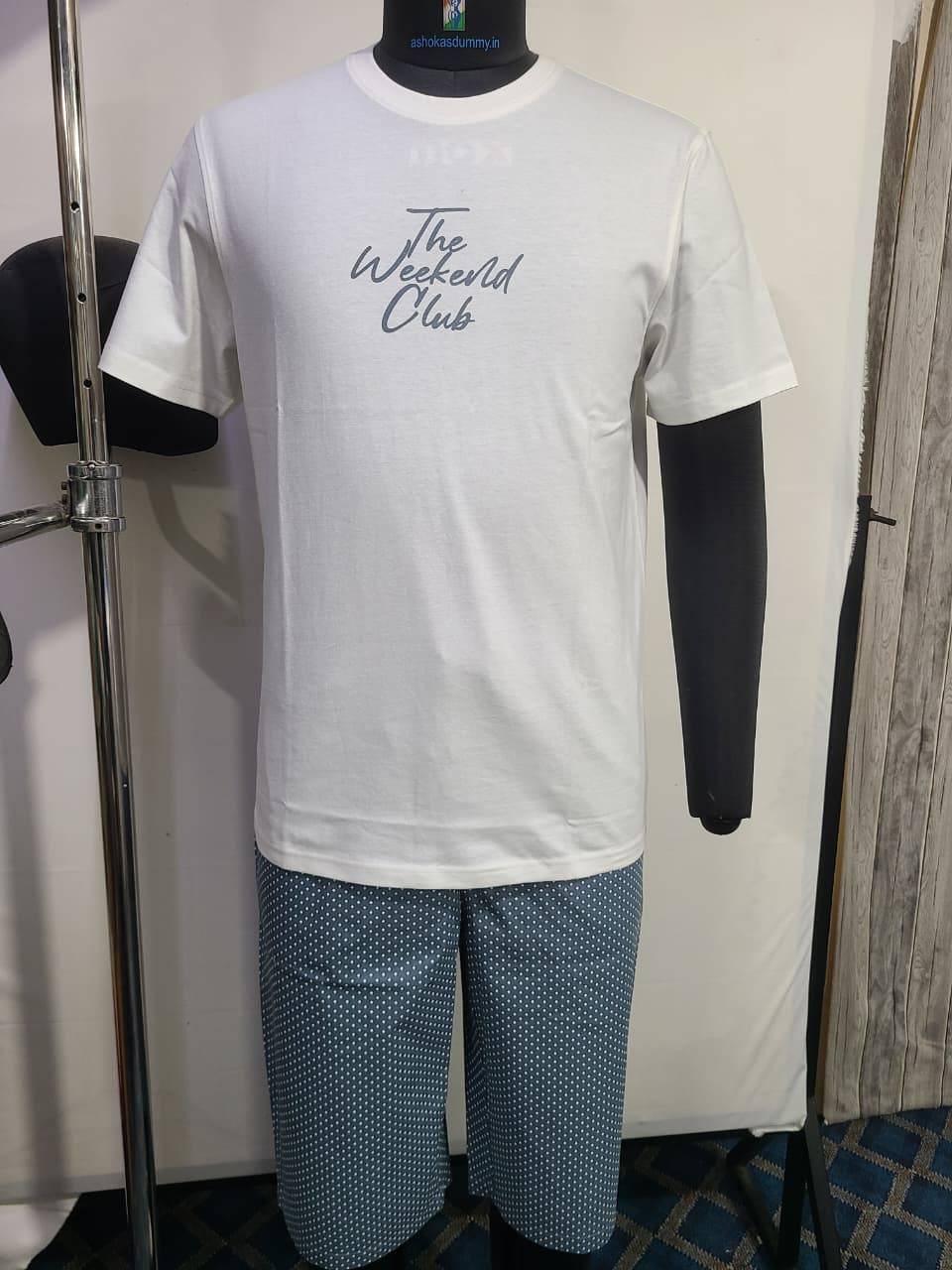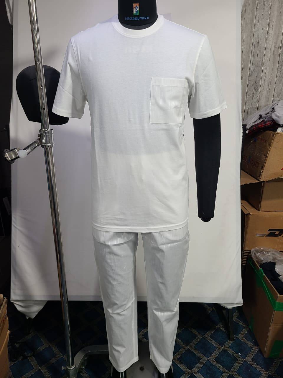 KNITTED TEE WOVEN DOBBY PAJAMA SET/IVORY
