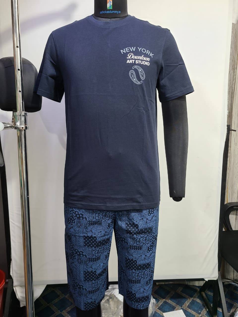 KNITTED TEE LONG WOVEN SHORTS SET/NAVY