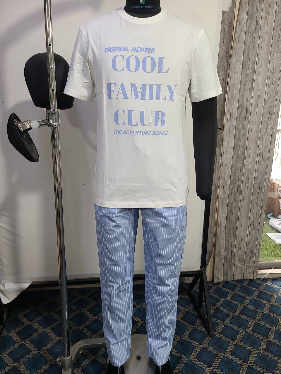KNITTED TEE WOVEN PAJAMA SET MM COOL FAMILY CLUB/IVORY / BLUE STRIPES
