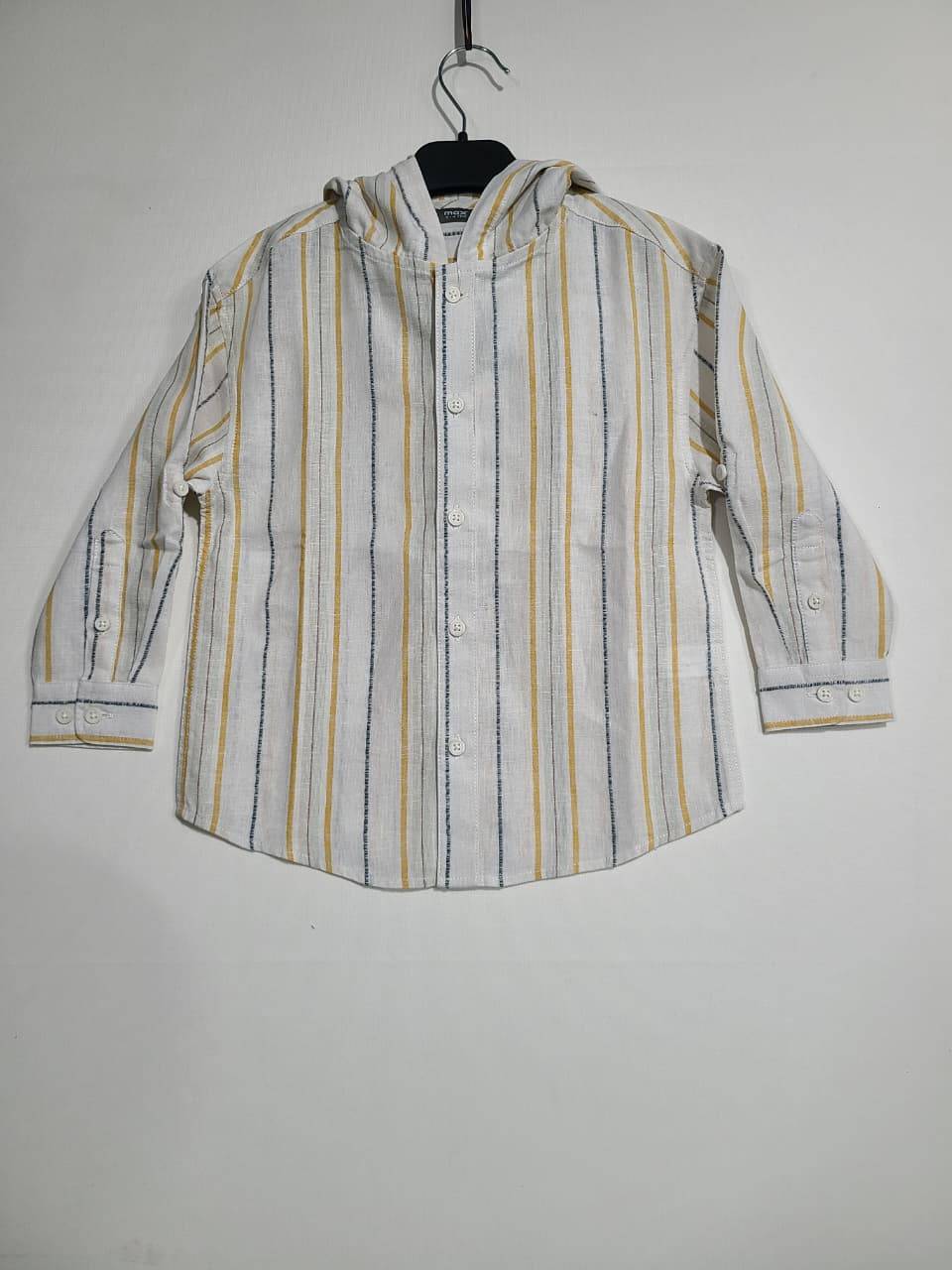 L/SLV LINEN RICH STRIPE HOODED SHIRT/PANTONE SNOW WHITE TCX