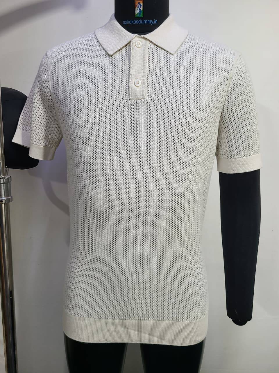VERTICAL TEXTURE FLAT KNIT POLO/IVORY