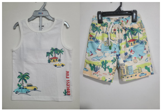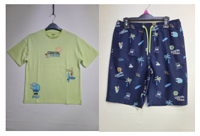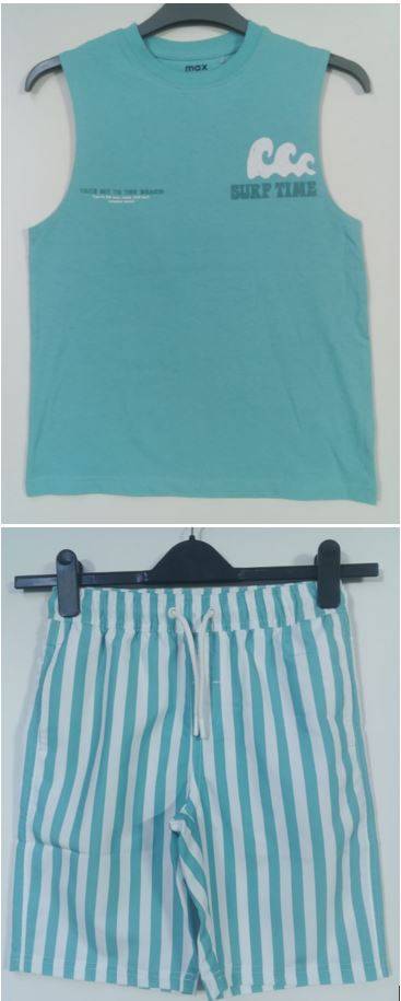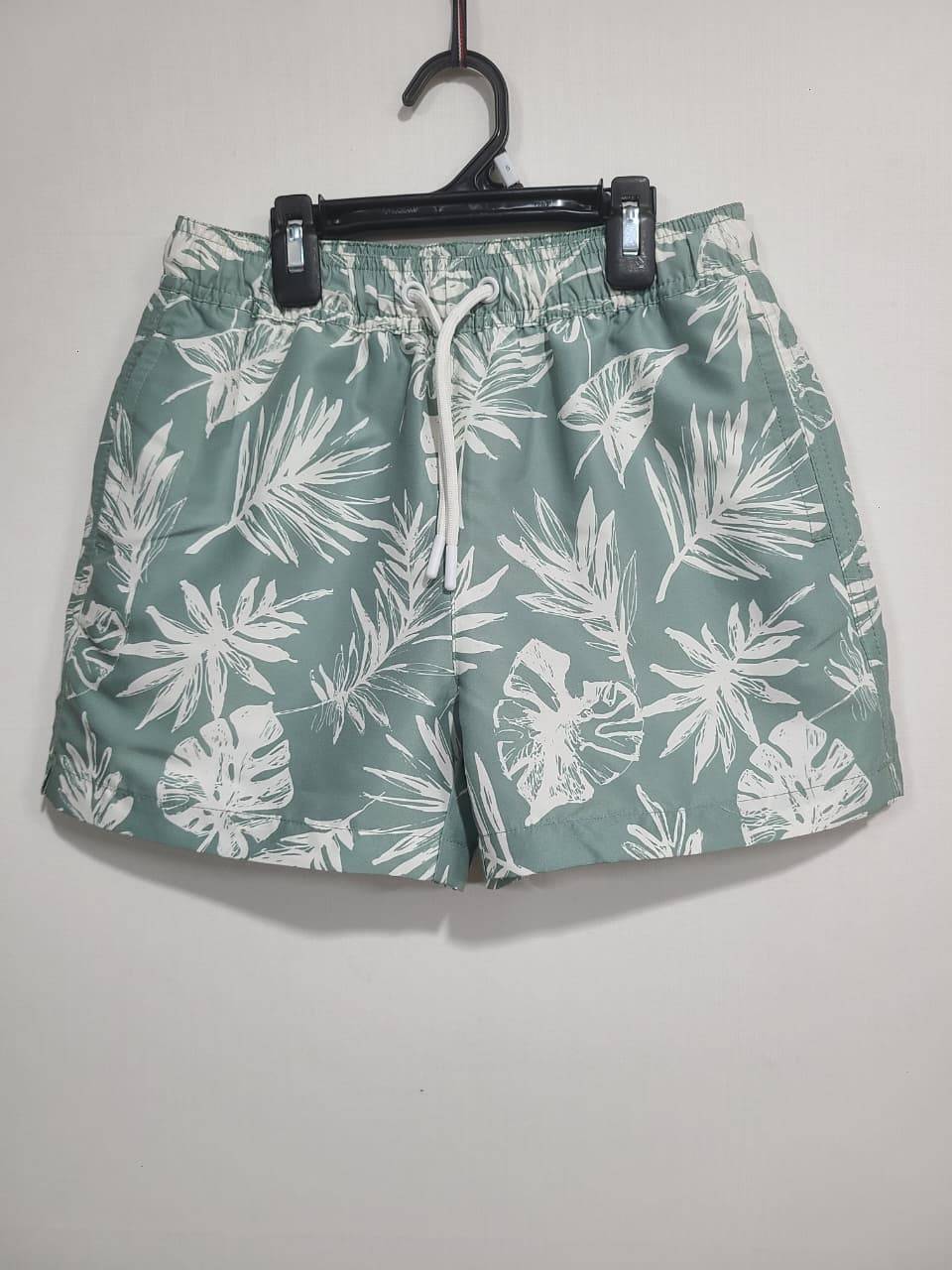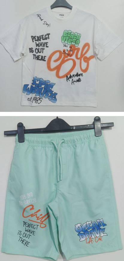 SIDE PRINTED SHORTSLEEVE TEE AND SHORT SWIM SET/TEE-WHITE AND SHORTS-GREEN