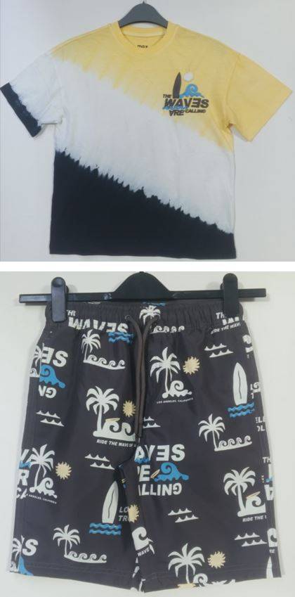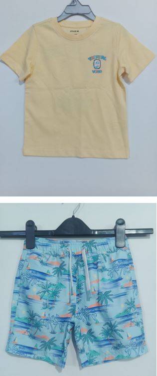 TROPICAL VIBES PRINTED SWIM TEE AND SHORTS SET/PANTONE BANANA CREPE TCX