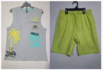 BEACH VIBES PRINT FRONT AND BACK PRINTED VEST AND SHORT SWIM SET/VEST - GREY AND SHORTS - NEON GREEN