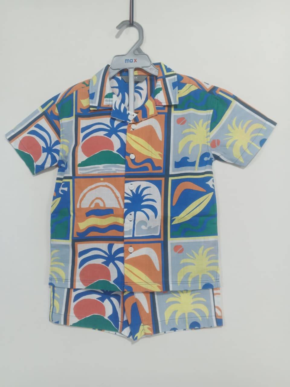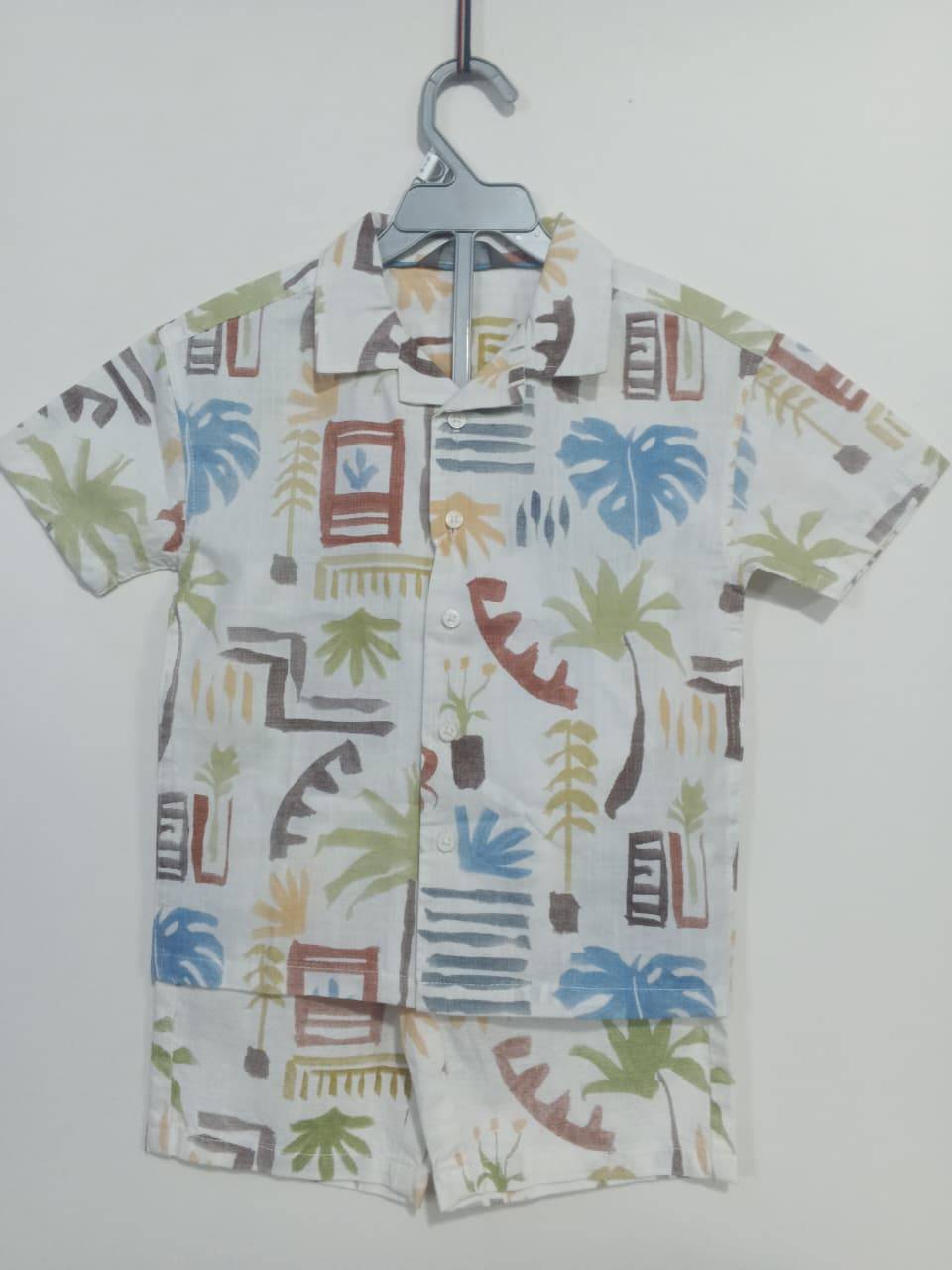 ALLOVER COLORFUL PRINTED SHIRT AND SHORTS SET/PANTONE SNOW WHITE TCX